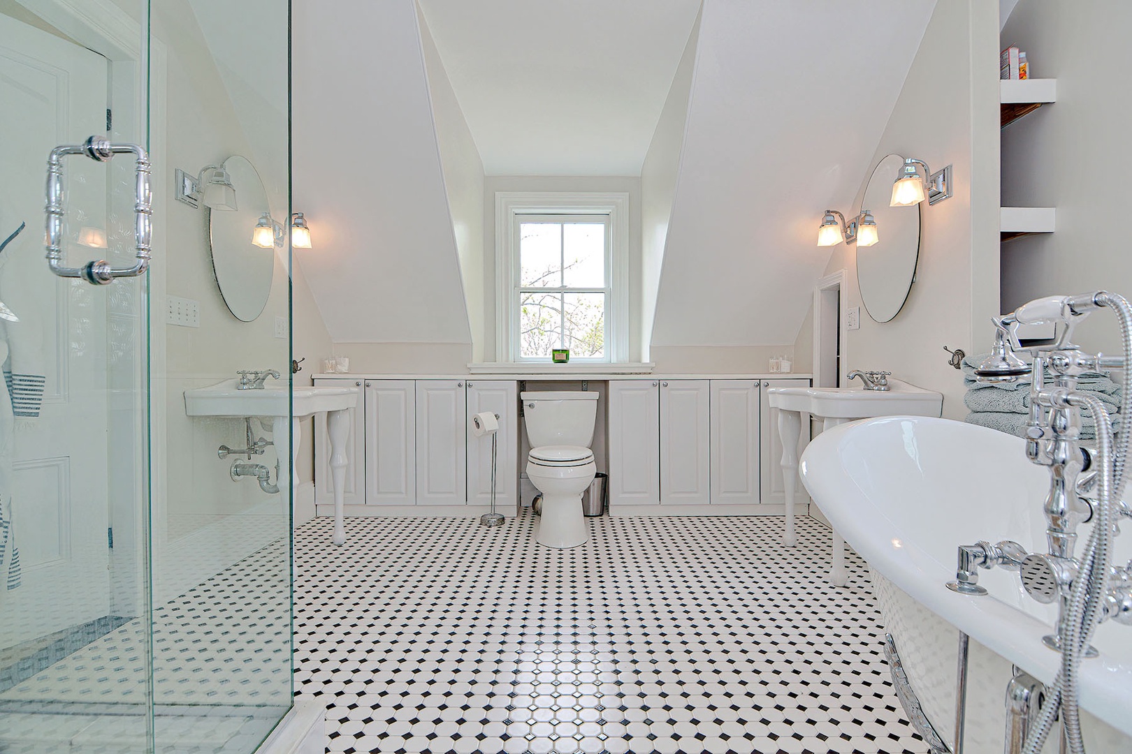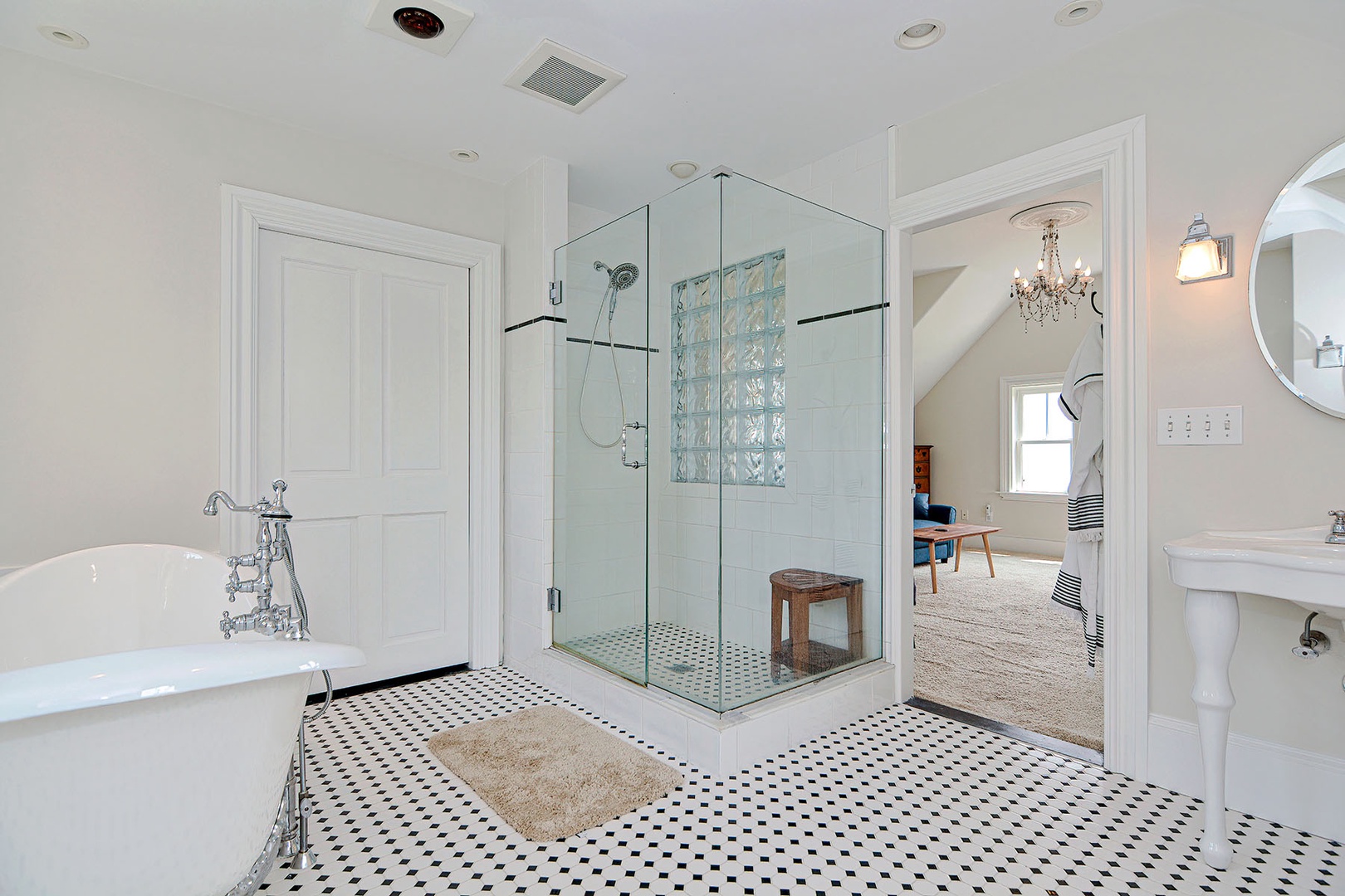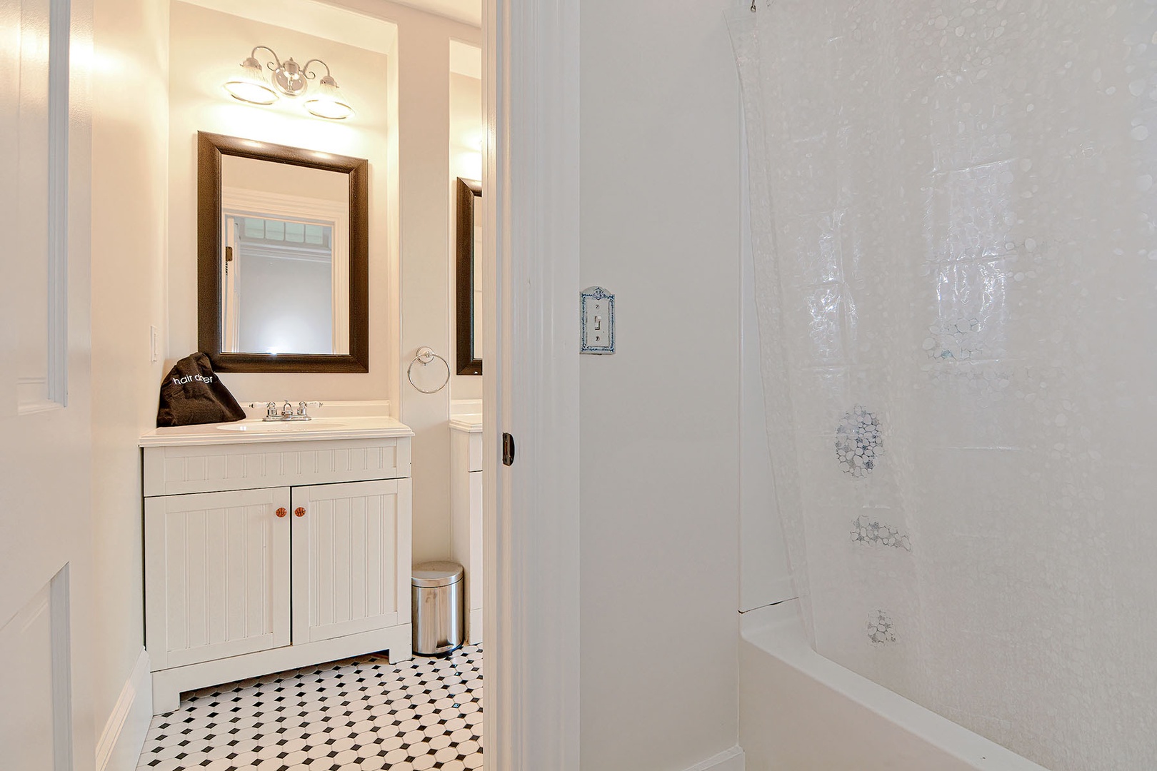 Full bathroom in the King suite with a large tub and walk-in shower.