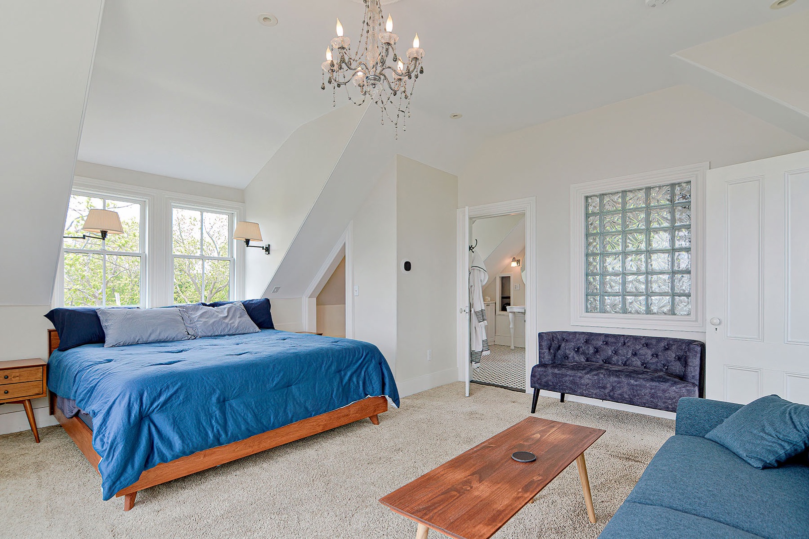 Third floor King bedroom with ocean views, sitting area and attached bathroom.